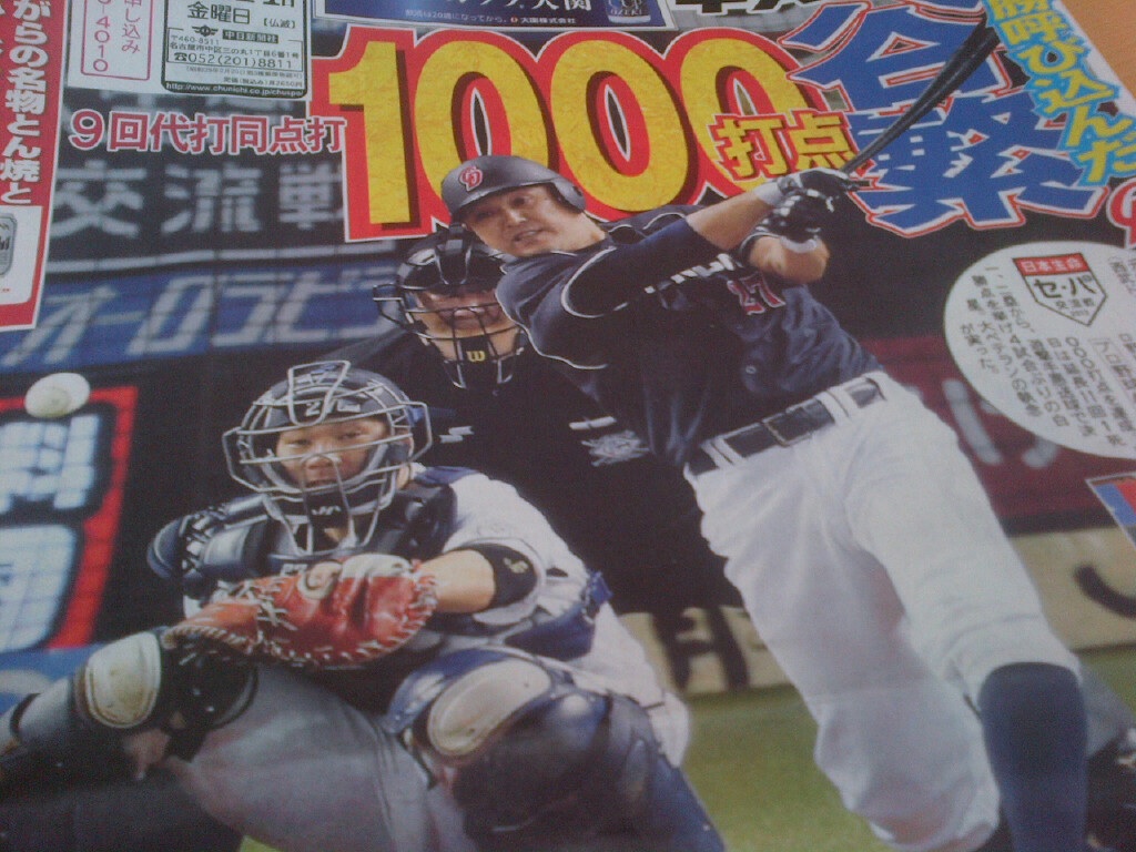 九回、一打同点で代打谷繁様の通算1000打点のウラにぁ